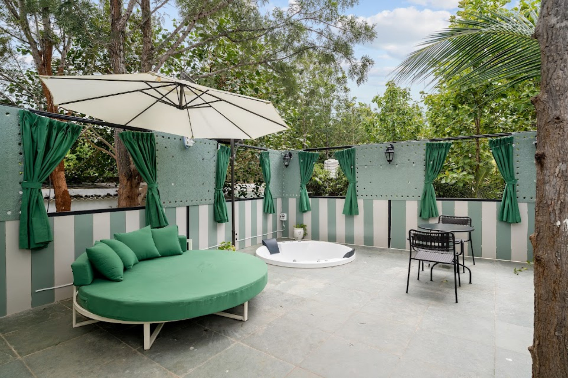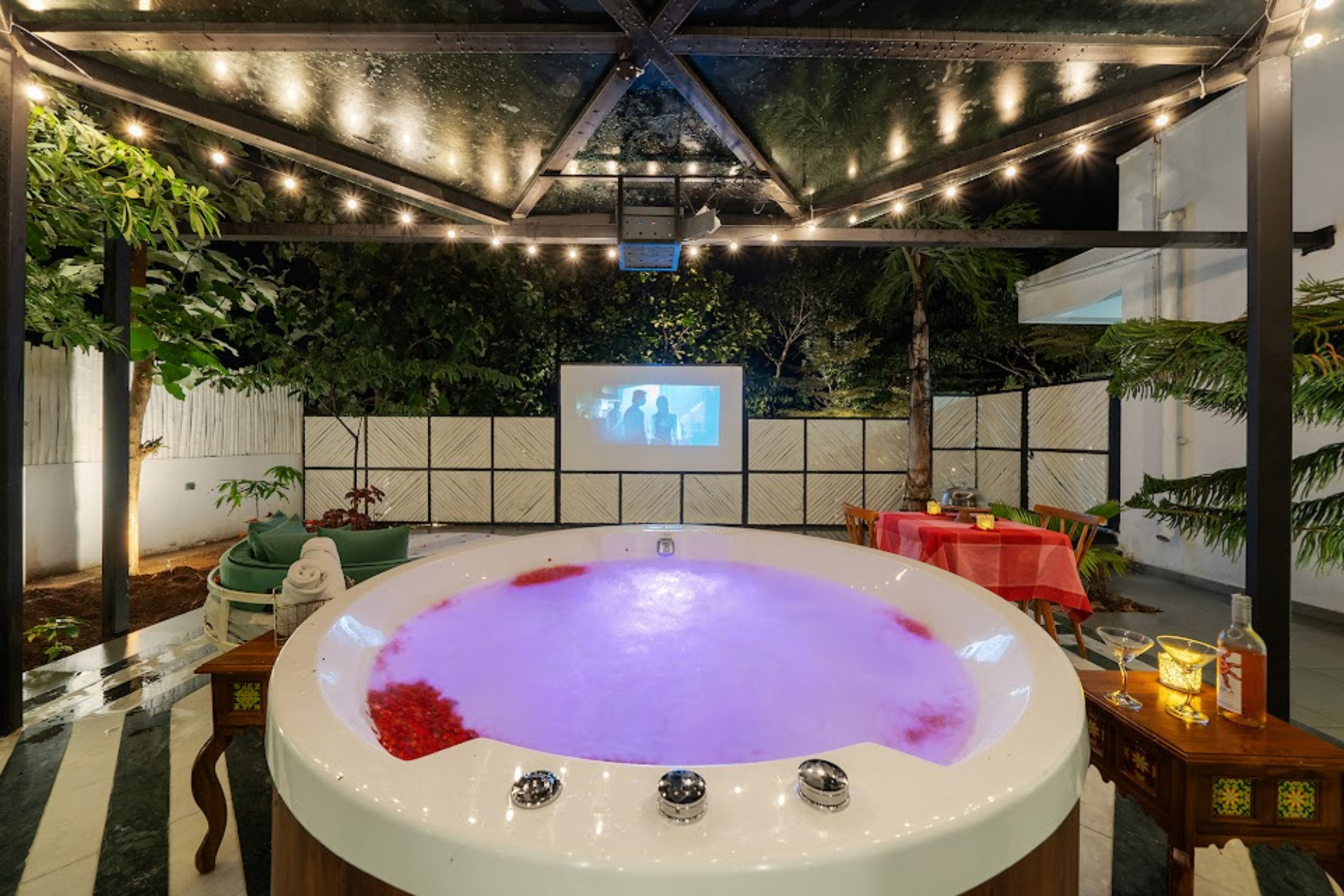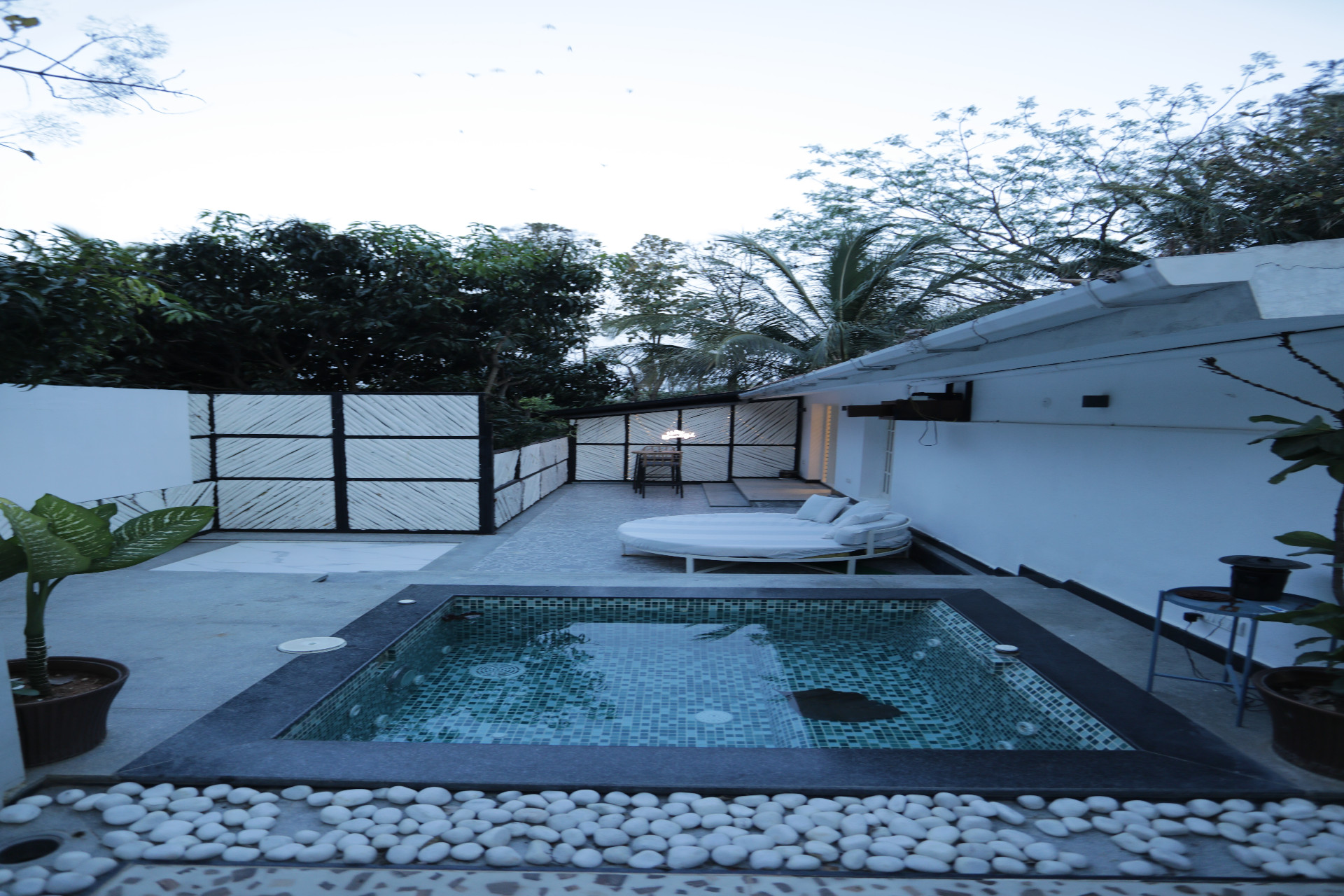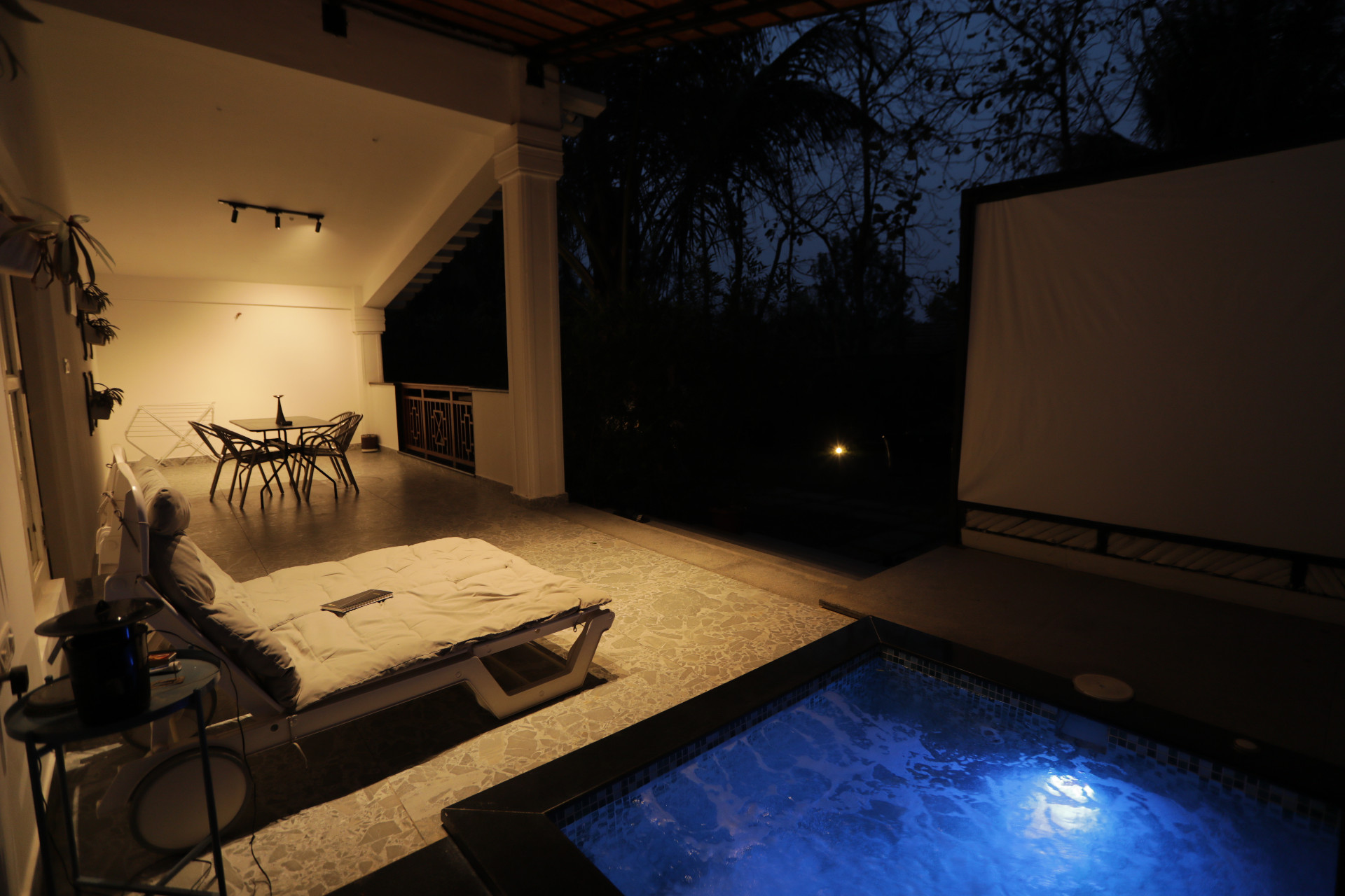Each villa features a private swimming pool or outdoor jacuzzi, surrounded by calm, open spaces - perfect for a refreshing soak or a peaceful evening under the stars with your own movie screening.