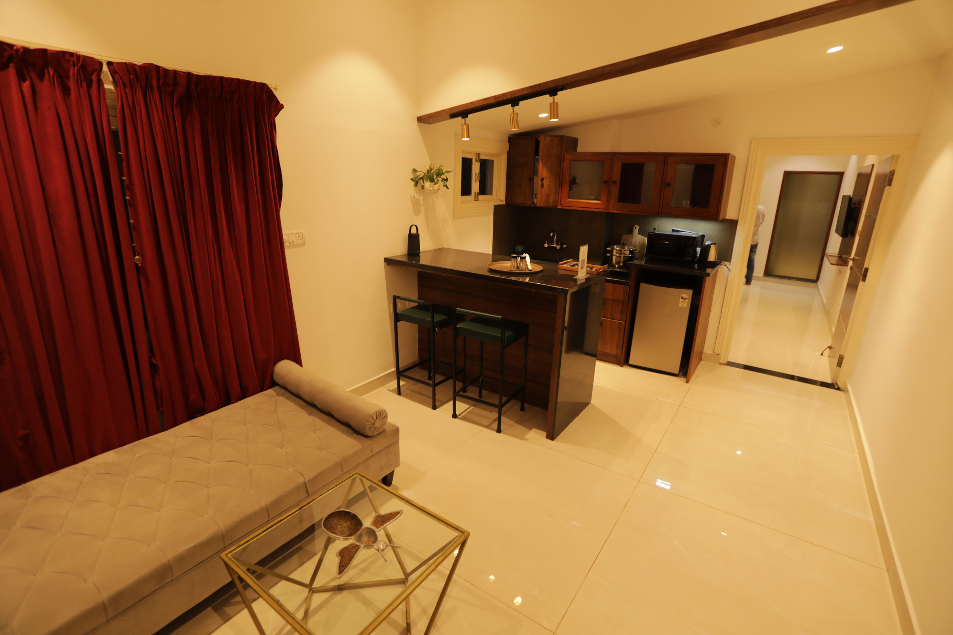 Casa Bella is a cozy, elegantly designed 1BHK private villa within Holiday Valley premises — perfect for couples and small families seeking an intimate retreat. Whether celebrating a special occasion or simply escaping the everyday rush, it offers a thoughtful blend of luxury, privacy, and comfort, crafted for up to three guests. Managed and maintained by Oh Stayz, every detail is cared for with warmth and quiet sophistication.