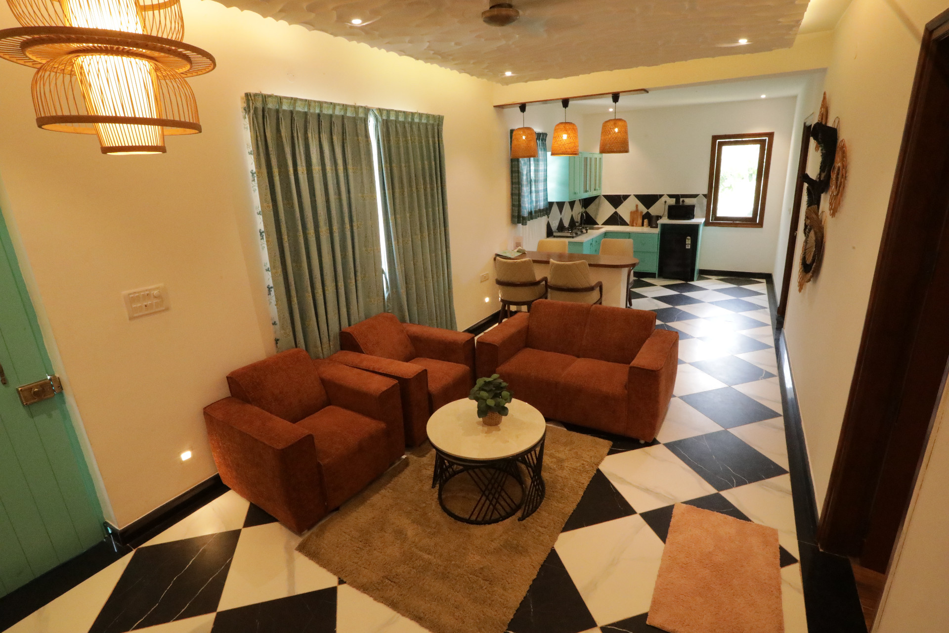 Mint is a thoughtfully designed 2BHK private villa within Holiday Valley premises — a stylish retreat for small families, close-knit friends, or couples seeking quiet comfort. Set amidst serene surroundings, it blends privacy, warmth, and contemporary elegance, just moments away from nature’s calm. Managed and maintained by Oh Stayz, every stay is cared for with ease, comfort, and attentive hospitality.