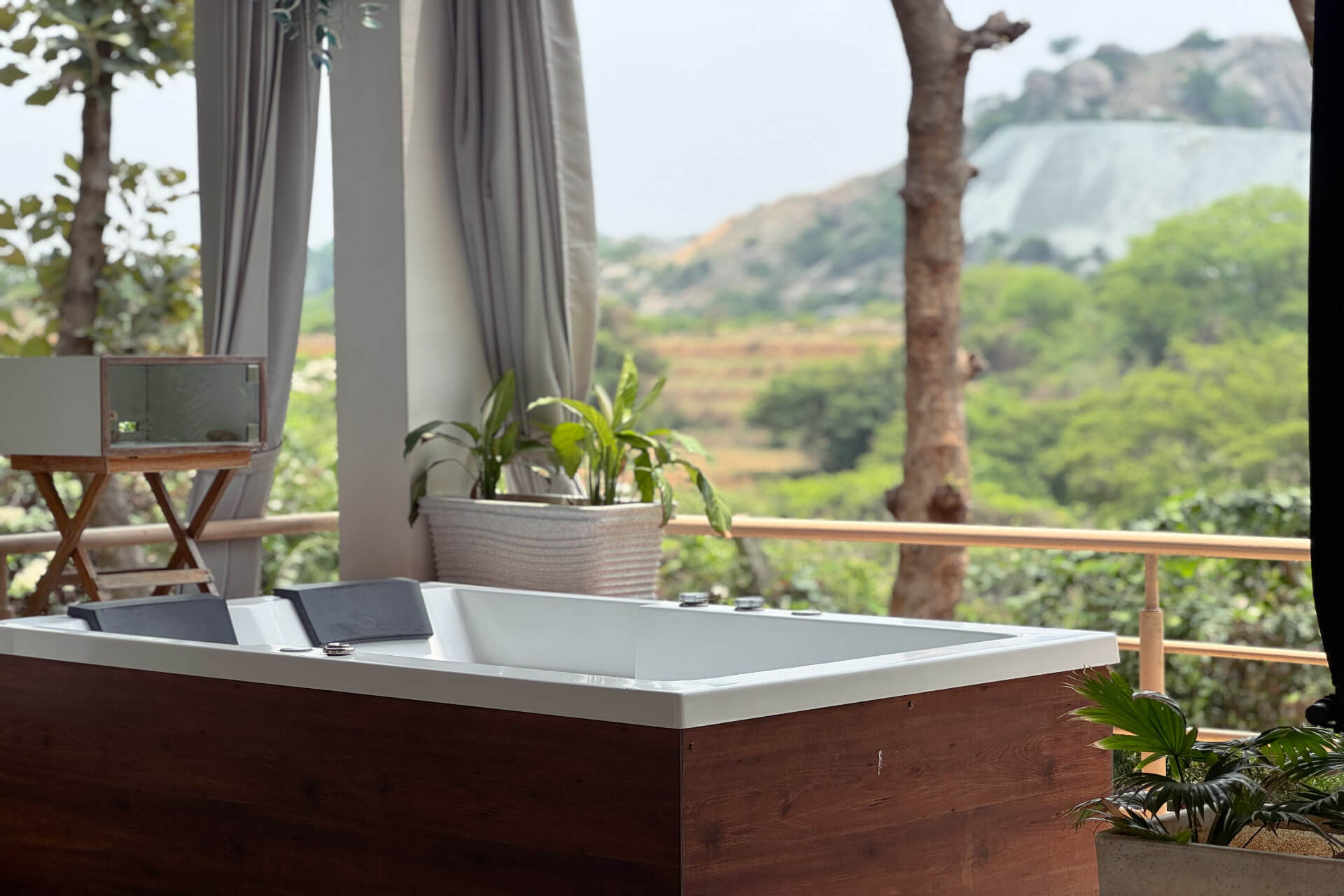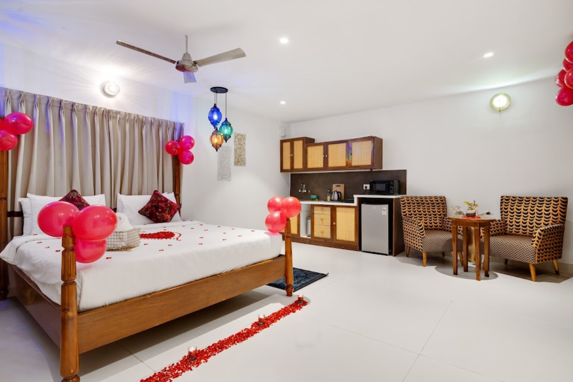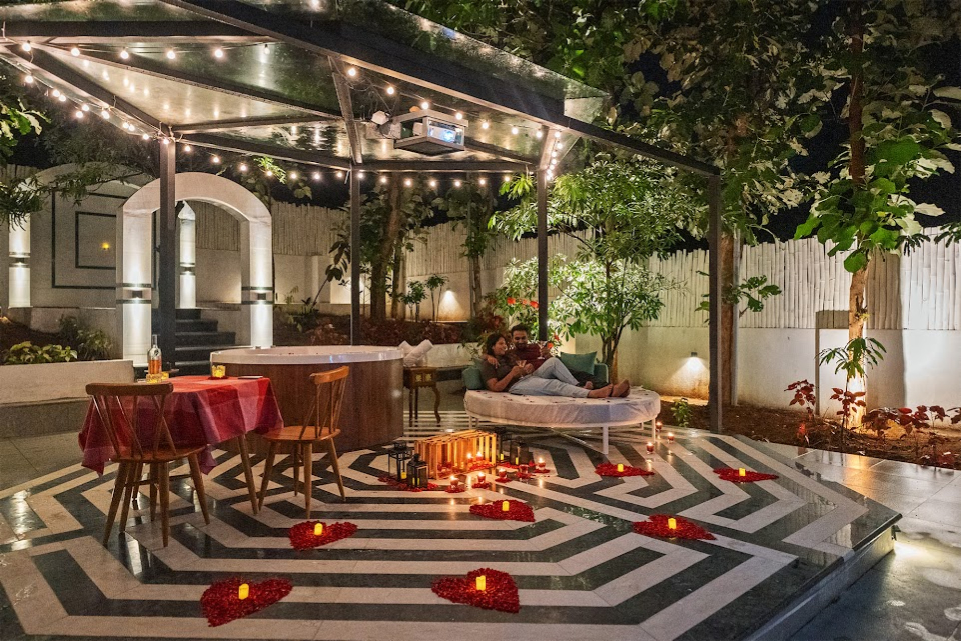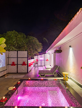 Juliet Vista is a romantic 1BHK villa within Holiday Valley premises — crafted for unforgettable couple getaways. Whether it’s a honeymoon, anniversary, proposal, or a quiet escape with your favorite person, this luxurious private villa offers a serene setting, thoughtfully designed for love, comfort, and connection. Managed and maintained by Oh Stayz, every detail reflects care, warmth, and intimate sophistication.