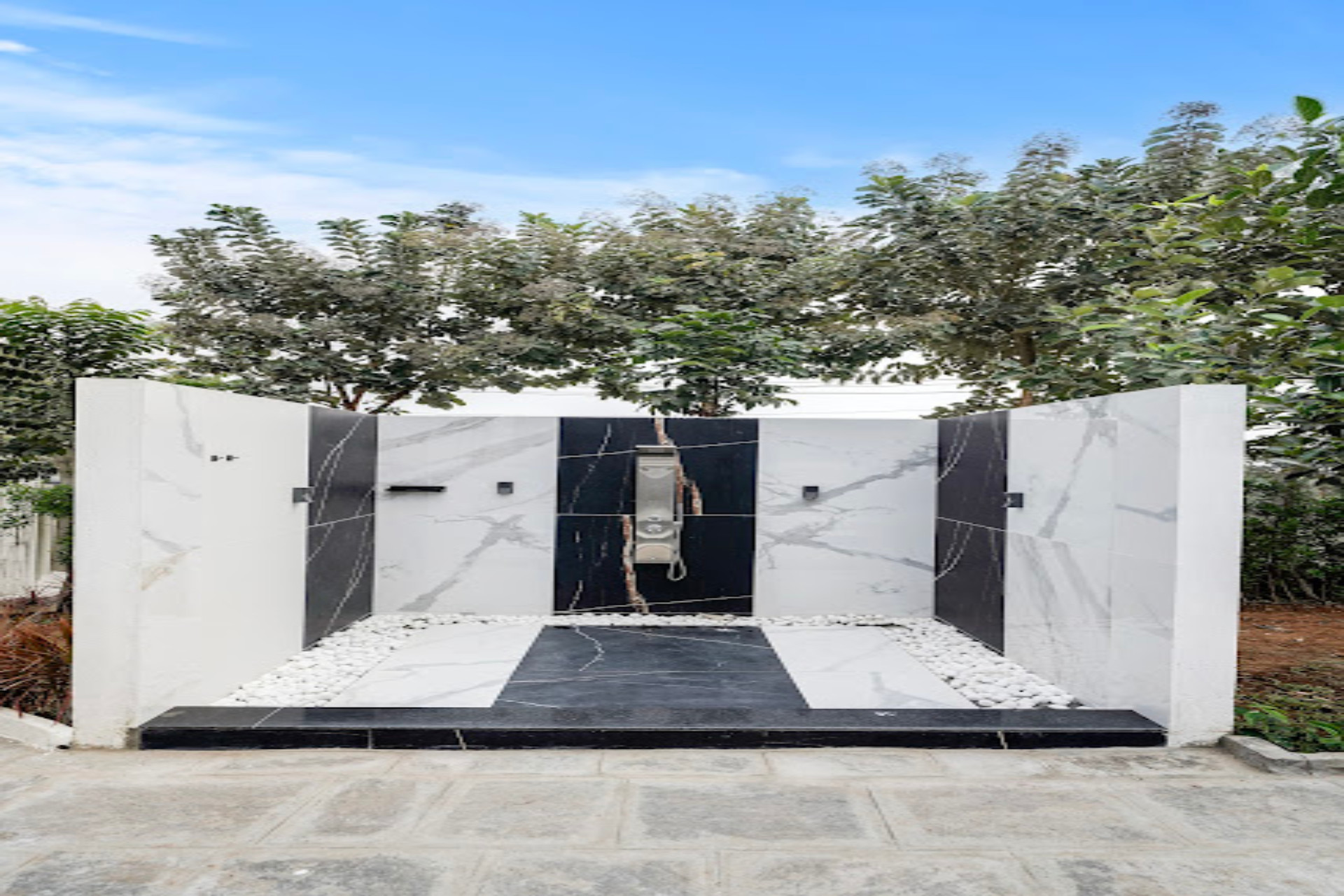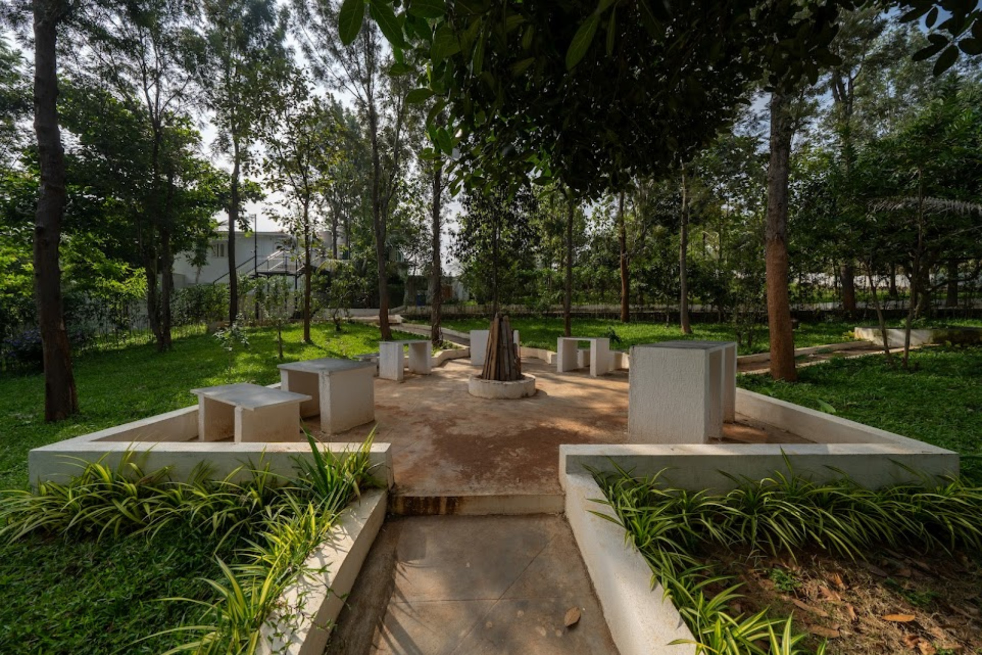 The lawn unfolds as a serene canvas of lush greenery — perfect for quiet walks, family gatherings, or grand celebrations, where every moment is embraced by nature’s calming touch.